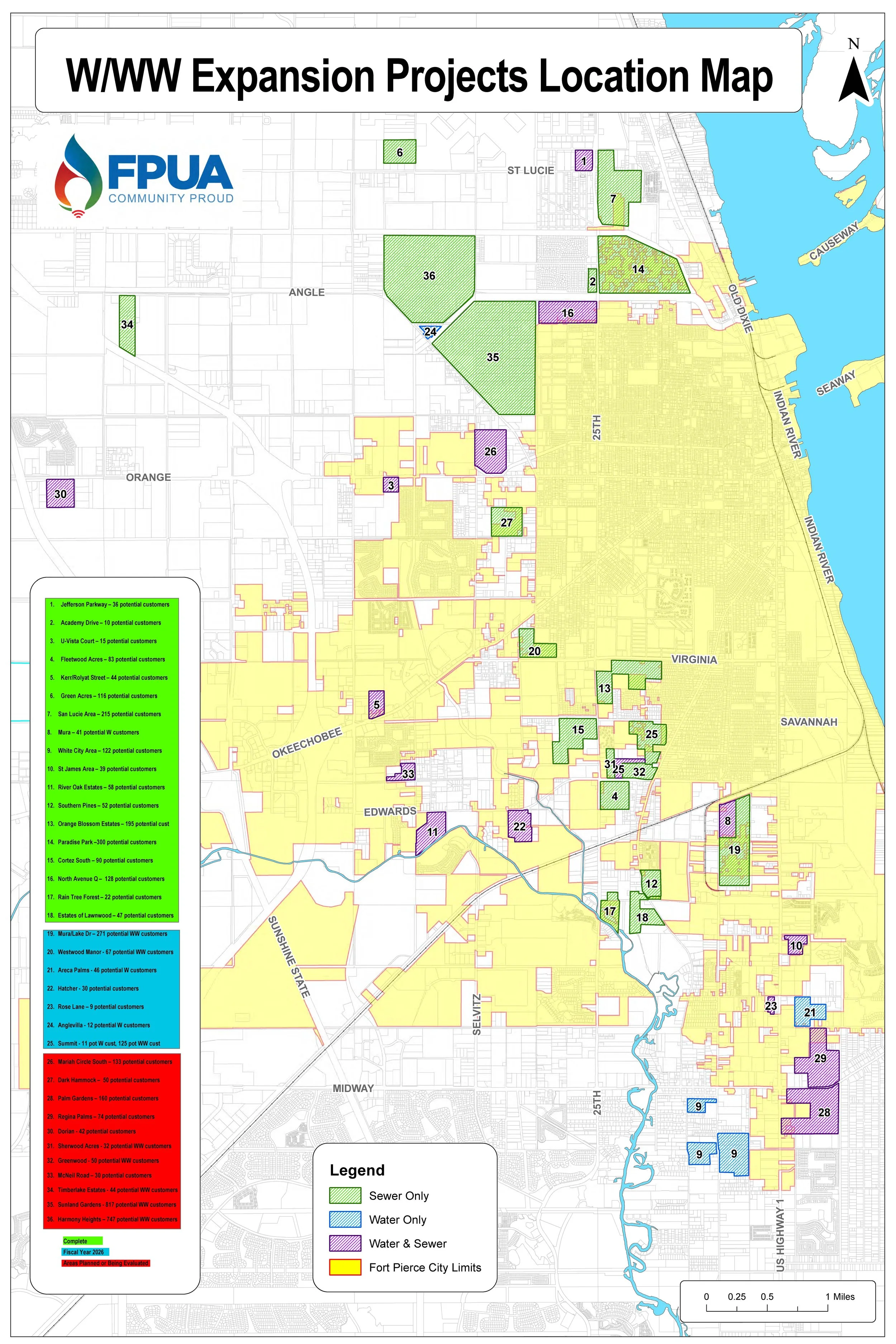 Fort Pierce Utilities Authority is actively expanding water and wastewater infrastructure throughout St. Lucie County and Fort Pierce to bring essential utility services to homes and businesses who do not yet have access.